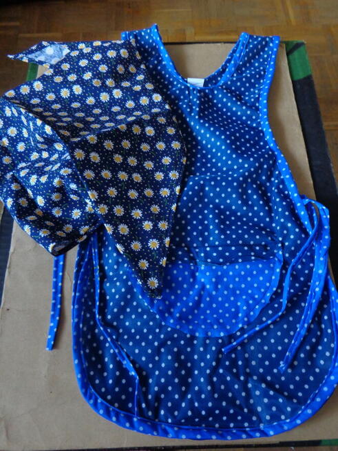 fartuszek dziecięcy do 6 lat nowy, plus chustka bawełna , wiązany z boku z obu stron kieszonka z przodu , łatwy do prania ...